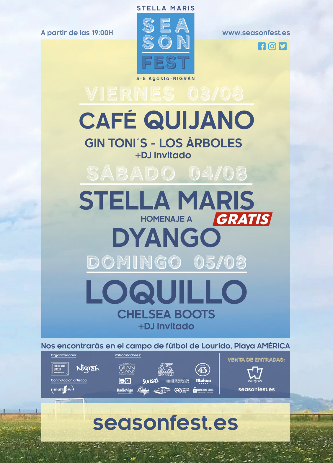 El Concello de Nigrán, recibió el primer fin de semana de agosto la II Edición del Festival Season Fest, donde recibieron a artistas como Café Quijano, Django, Loquillo y los Trogloditas… y muchos más. El Festival también disponía de stands de comida y bebida, entre ellos nuestra Fruit Truck de Frutas Nieves, donde ofrecimos a los asistentes una gran variedad de zumos naturales, gazpacho, brochetas de frutas y muchos de nuestros productos.